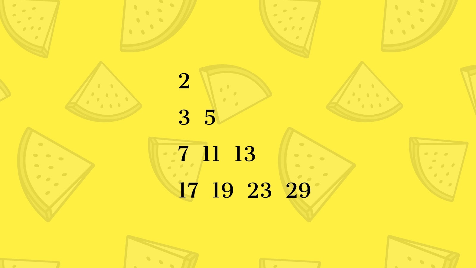 I think you’ve already figured it out by looking at the above pattern that the numbers are all prime numbers. It takes number of lines \((n)\) as input and prints exactly \(n(n+1)/2\) prime numbers. For example, if \(n=4\) then we have \(4(4+1)/2 = 10\) prime numbers in the pattern. Each line in the pattern has prime numbers exactly equal to the line number. For example, line 4 has 4 prime numbers, similarly, line 7 has 7 prime numbers.